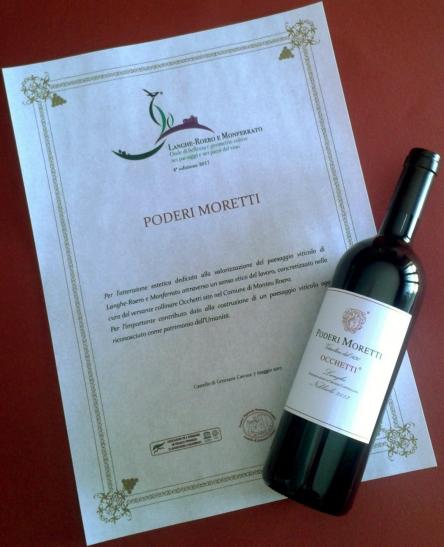 Poderi Moretti ha ricevuto questo riconoscimento per l'impegno nella valorizzazione del paesaggio viticolo di Occhetti di Monteu Roero.